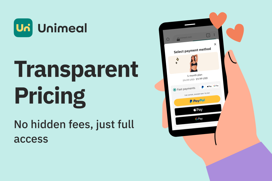 At the moment Unimeal has different plans and offers. Please check the available plans and prices for them at the end of the quiz. You’ll always know when your subscription renewal coming up and how to cancel if you need to, right from the platforms.