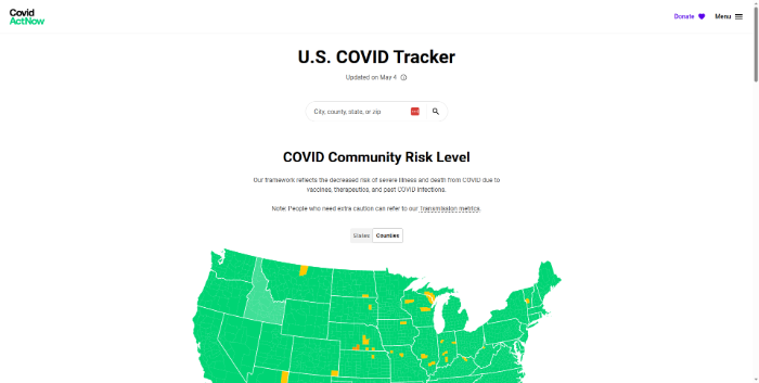 CovidActNow is a powerful data-tracking tool that provides up-to-date insights into how the virus has spread throughout America, enabling users to assess risk levels in their community or around different parts of the country. The platform offers interactive visualizations for more detailed analysis—allowing you to explore this pandemic more profoundly and make better-informed decisions about your safety.